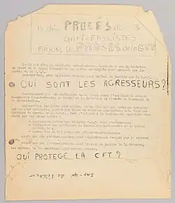 Entre-temps, des « maoïstes » ont distribué des tracts le devant l'usine[6] et des exclus du PCMLF menés par Christian Prigent créé en octobre le mouvement « Rennes Révolutionnaire » après avoir en sorti le 1er numéro du journal Drapeau rouge. En 1970, la CGT écrit dans une brochure que : « de nombreux ministres, députés, maires et préfets ont eu des contacts avec la CFT et évoque « l'attaque de militants maoïstes » venus en 1970 à Citroën Rennes. La même année à Lyon, selon l'enquête et les déclarations de Marcel Caille, secrétaire de la CGT, reposant sur les récits d’un ancien militant de la CFT, Paul Berliet donne carte blanche à son directeur général du personnel pour distribuer argent et locaux à la CFT.