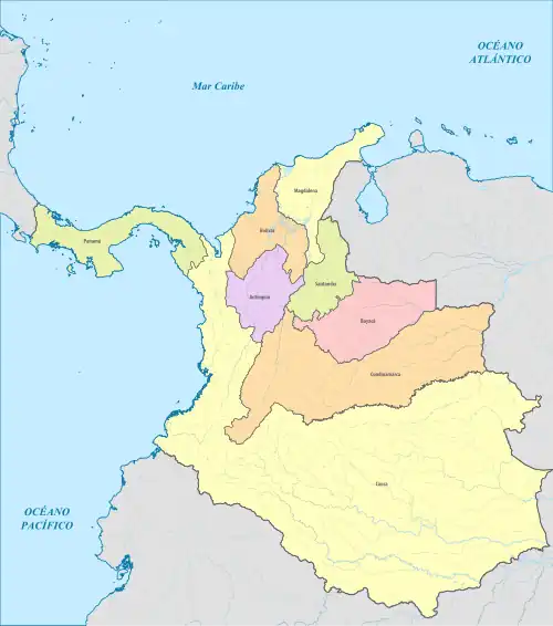 La réforme constitutionnelle de 1853 introduit le fédéralisme dans le pays et le le premier État fédéral est créé : Panama[1]. Suivent dans cette voie les États d'Antioquia le [2] et Santander le [3]. Afin d'éviter l'éclatement du pays, le Congrès adopte la loi du qui crée les États de Bolívar, Boyacá, Cauca, Cundinamarca et Magdalena (l'État de Tolima sera créé le par la sécession d'une partie de l'État de Cundinamarca).