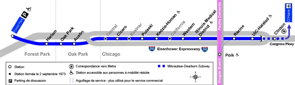 - ↑ « Chicago L.org : Operations - Lines → Forest Park (Congress) », sur chicago-l.org (consulté le ).