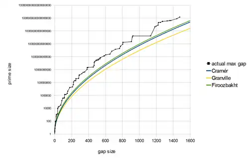 - ↑ (en) Alexei Kourbatov, « Upper bounds for prime gaps related to Firoozbakht's conjecture », J. Integer Sequences, Article 15.11.2, vol. 18, (lire en ligne).