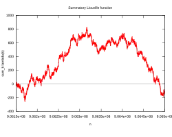 - ↑ (en) M. Tanaka, « A Numerical Investigation on Cumulative Sum of the Liouville Function », Tokyo Journal of Mathematics, vol. 3, no 1, , p. 187-189 (lire en ligne)
