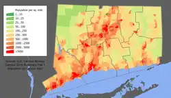 Avec 284,97 hab./km2 en 2010, le Connecticut était le 4e État le plus dense des États-Unis après le New Jersey (461,55 hab./km2), Rhode Island (393,08 hab./km2) et le Massachusetts (324,10 hab./km2).