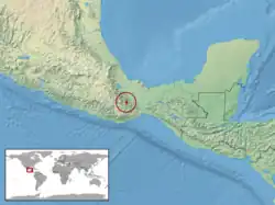 Cette espèce est endémique des États d'Oaxaca et de Puebla dans le sud du Mexique. Elle est présente entre 1 700 et 3 080 m d'altitude[1].