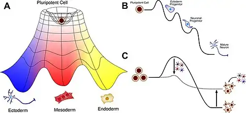 Il en donne un premier aperçu en 1932, en proposant un scheme selon lequel la différenciation cellulaire peut se comparer à « une boule poussée par un ensemble de forces le long d'une surface plane selon une suite de cônes »[6]. Cette intuition est à l'origine des interprétations mathématiques (topologie) de la morphogenèse[9].