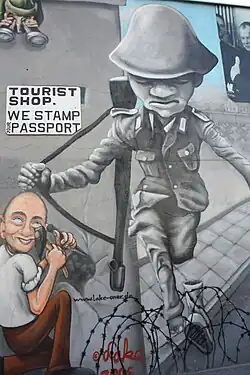 - ↑ (de) Bundeszentrale für politische Bildung, « „Sprung in die Freiheit": Die Flucht des DDR-Grenzpolizisten Conrad Schumann, 15. August 1961 », sur www.chronik-der-mauer.de/, BpB (consulté le )