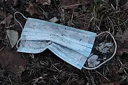 En raison de la consommation sans précédent de masques faciaux jetables, une quantité significative de ces derniers se retrouvent abandonnés dans la nature, ce qui accroît la quantité de déchets plastiques dans le monde[61].