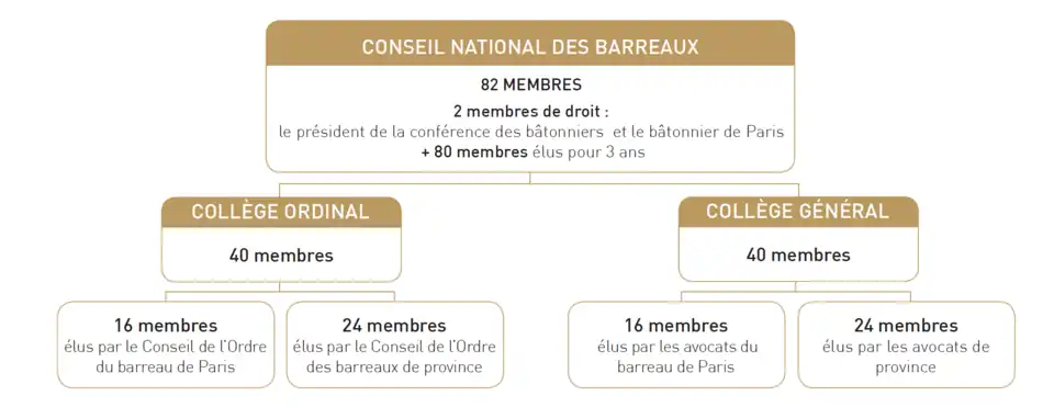 - ↑ « Le fonctionnement du Conseil national des barreaux », sur Conseil national des barreaux, (consulté le )