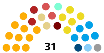 Le conseil régional élu lors des élections de 2019 est réparti avec les sièges suivants :