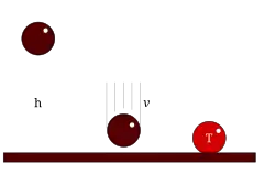 - si la balle est déformable et qu'elle ne rebondit pas, elle s'immobilise. L'énergie cinétique s'est alors transformée en énergie thermique (notée T).
