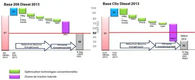 Dans ce programme, toutes les pistes de réduction de la consommation sont explorées et les techniques permettant d'atteindre le seuil de 2 l/100 sont mises en œuvre[22] sur des démonstrateurs présentés au Mondial de l'automobile 2014 à Paris (Peugeot 208 et C4 Cactus avec la techniqie Hybrid Air et Renault EOLAB avec la technique Hybride rechargeable).