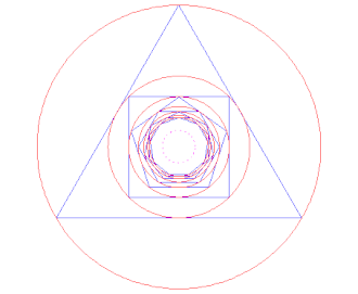 Les premières étapes de la construction sont les suivantes : on inscrit dans un cercle unité un triangle équilatéral, à l'intérieur duquel on inscrit un cercle . Dans on inscrit un carré, à l'intérieur duquel on inscrit un cercle . Dans on inscrit un pentagone régulier, dans lequel on inscrit un cercle , etc.