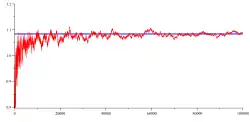 En 1849, Tchebycheff[2] démontre que si la limite existe, elle doit être égale à 1. Une preuve plus simple est donnée par Pintz en 1980[3].