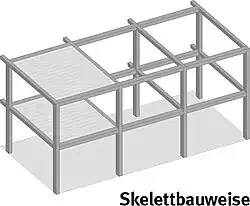 Les planchers d’une telle structure à ossature sont maintenus, non pas par des murs porteurs continus comme dans le cas d’une construction massive, mais par des poutres horizontales croisées à des supports verticaux isolés (poteaux, colonnes, piliers, montant).