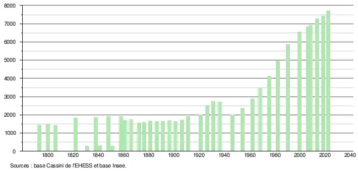 - ↑ Population municipale de référence en vigueur au 1er janvier 2025, millésimée 2022, définie dans les limites territoriales en vigueur au 1er janvier 2024, date de référence statistique : 1er janvier 2022.