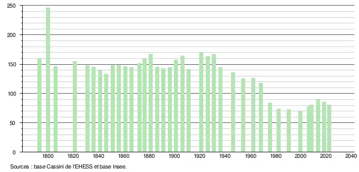 - ↑ Population municipale de référence en vigueur au 1er janvier 2025, millésimée 2022, définie dans les limites territoriales en vigueur au 1er janvier 2024, date de référence statistique : 1er janvier 2022.