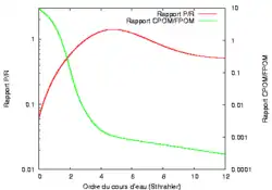 Relation du rapport CPOM/FPOM au rapport P/R le long du continuum fluvial