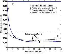 À t = 0, début de la stratégie de contrôle, on investit un maximum dans l’effort de recherche, pour augmenter les chances de trouver l’espèce à un stade précoce.
