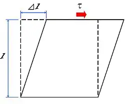 Dans le cas des matériaux solides élastiques, la contrainte de cisaillement τ est reliée à la variation de l'angle droit γ par le module de cisaillement G par la relation :