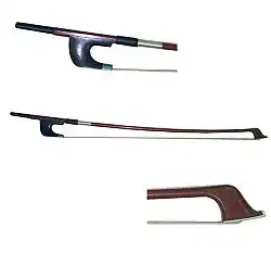 Il existe deux types d'archet pour la contrebasse. L'archet français est semblable aux archets des autres instruments de la famille du violon (violon, alto et violoncelle) et se tient de la même façon : l'instrumentiste place le bout du pouce dans le creux du talon et le bout des autres doigts sur la baguette. L'archet allemand est moins long, et il est tenu d'une façon différente, rappelant l'archet de la basse de viole : le musicien place le pouce sur la baguette et ses autres doigts empoignent le talon. L'archet allemand est beaucoup plus ancien que l'archet français, peu utilisé avant les années 1800, avant son adoption par le virtuose italien Giovanni Bottesini. La plupart des archets sont taillés et fabriqués dans un bois du Brésil, le pernambouc. La couleur varie du marron clair au noir.