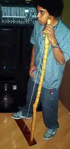 De plus, comme il n'y a pas d'ouïe sur la caisse de résonance, il est fréquent de mettre une cale de quelques centimètres à l'avant sous la bassine pour soulever le bord de celle-ci.