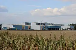 Blason | Tiercé en pairle d'azur à l'aigle d'argent, d'or au quintefeuille de gueules au bouton octogonal d'or bordé de cinq triangles d'argent, et de gueules à la roue dentée d'or ; à la terrasse ondée d'azur brochant en pointe. |