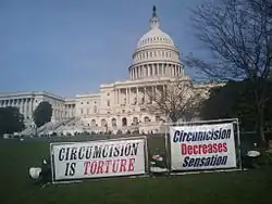 Des associations contre la circoncision[Qui ?] envoyèrent une proposition de loi afin d’interdire la circoncision des mineurs auprès du Congrès des États-Unis mais elle ne reçut l’aval d’aucun sénateur.