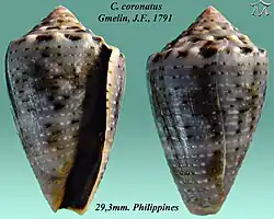 Conus coronatus est un mollusque gastéropode marin appartenant à la famille des Conidae.
