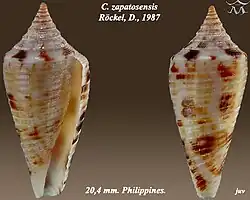 - ↑ (en) WoRMS : espèce Conus zapatosensis Röckel, 1987