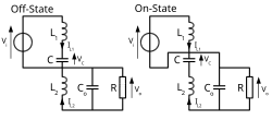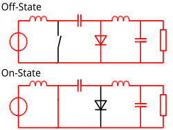 Les deux inductances L1 et L2 sont utilisées pour convertir respectivement la source de tension d'entrée et la source de tension de sortie (Co) en sources de courant. En effet une bobine peut être considérée, sur une courte période, comme une source de courant comme elle maintient celui-ci constant. Ces conversions sont nécessaires afin de limiter le courant lorsque l'on relie le condensateur C à une source de tension (Vo ou Vi).