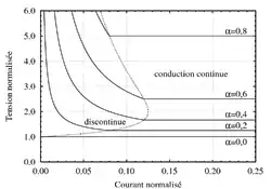 Par conséquent, la frontière entre conduction continue et discontinue est décrite par :