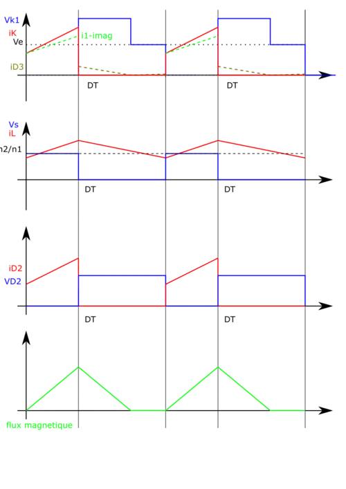 - Démagnétisation totale du transformateur, à chaque début de période, le flux dans le circuit magnétique est nul.