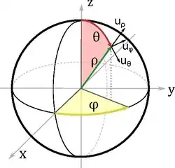 Cette convention (revenant à écrire P(ρ,θ,φ), où θ désigne la colatitude et φ la longitude) est la plus utilisée en pratique, et est celle définie par la norme ISO/CEI 80000-2[2]. La distance au centre est parfois notée r[1].