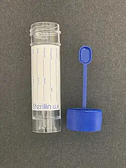 - Les selles, en général diarrhéiques, sont prélevées et l'échantillon est placé dans un récipient stérile fermé.