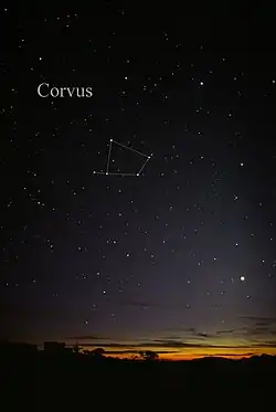 Le Corbeau est une petite constellation de l'hémisphère sud. Elle est l'une des 48 constellations répertoriées par l'astronome du IIe siècle Ptolémée, qui dépeint un corbeau impliqué dans des légendes associées au dieu Apollon, perché sur le dos de l'Hydre. Ses quatre étoiles les plus brillantes, Gamma, Delta, Epsilon, et Beta Corvi, forment un quadrilatère très caractéristique et facilement identifiable dans le ciel nocturne.