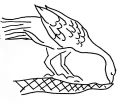 Nous ne savons pas grand-chose de cet emblème du dieu Adad, mais nous le trouvons posé sur la queue de MUŠ, « le Serpent », ancêtre de la figure de l’Hydre, sur un calendrier zodiacal d’époque séleucide, mais qui est probablement la copie d’un document datant du début du 1er millénaire av. è. c., ce qui n'a probablement aucun sens mythologique, mais exprime une simple proximité astronomique: à preuve, la figure d'URA, soit le Lion est aussi posée sur MUŠ.
