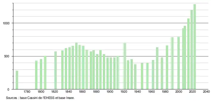 - ↑ Fiches Insee - Populations de référence de la commune pour les années 2006, 2007, 2008, 2009, 2010, 2011, 2012, 2013, 2014, 2015, 2016, 2017, 2018, 2019, 2020, 2021 et 2022.