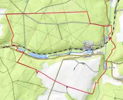 - ↑ Les ruisseaux intermittents sont représentés en traits pointillés.