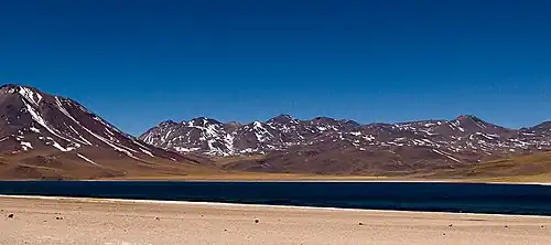 Vue partielle du Cordón de Puntas Negras depuis la Laguna Miscanti.