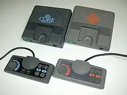 Les manettes de la CoreGrafX ont une prise plus grosse que celle de la DUO mais leur schéma est le même. Pour autant, il faut utiliser un adaptateur pour passer une manette de l'une à l'autre.
