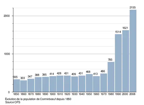 Le graphique suivant résume l'évolution de la population de Corminboeuf entre 1850 et 2008[6] :
