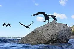 - ↑ Cook, T; Leblanc, G, « Why is wing-spreading behaviour absent in blue-eyed shags? », Animal Behaviour, vol. 74, , p. 649-652 (DOI 10.1016/j.anbehav.2006.11.024, lire en ligne)