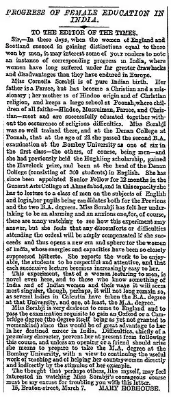 - ↑ « UK honours Cornelia Sorabji - Hindustan Times », (version du sur Internet Archive)