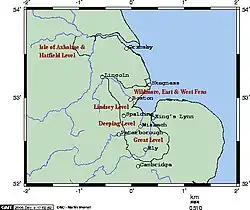- ↑ Henry Clifford Darby, The Draining of the Fens, Cambridge University Press, (1re éd. 1940)