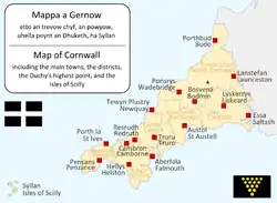 Les Sorlingues (Enesow Syllan/Scilly Islands) faisaient autrefois partie du comté administratif de Cornouailles, mais forment une unité administrative séparée (depuis avril 2009). L'archipel fait cependant toujours partie du «comté cérémonial» de Cornouailles.