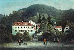 Le maison du Corps Saxo-Borussia est situé sur le versant nord du Gaisberg (de). Il est construit en 1802 et appartient au Corps depuis 1874. Il est nommé Riesenstein sur proposition du président de l'AVS Harald von Siebert[5] Son prédécesseur Franz-Adalbert baron von Rosenberg a son nom gravé dans le grès rouge au-dessus de l'entrée de la maison[6]. Cela remonte peut-être au terme médiéval "géant" comme synonyme de "toboggan". Au Moyen Âge les pierres de carrière provenaient d'une carrière de la vallée « alésée »[7].