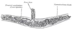 Les corpuscules de Ruffini sont des mécanorécepteurs (organes sensoriels) encapsulés du tissu de connectivité sous-cutané et des articulations. Ils sont constitués de capsules ovoïdes dont les fibres sensitives sont terminées par des nœuds collatéraux. Ils sont responsables de la détection de pressions sur la peau et de l'étirement de la peau. Ce sont des fibres à adaptation lente (entre stimulus et réponse, le délai est lent, mais la réponse dure jusqu'à la fin du stimulus), renseignant sur la pression, son intensité et sa durée. Ils sont d'ailleurs aussi des thermorécepteurs sensibles à la chaleur[1].