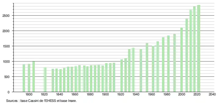 - ↑ Fiches Insee - Populations de référence de la commune pour les années 2006, 2007, 2008, 2009, 2010, 2011, 2012, 2013, 2014, 2015, 2016, 2017, 2018, 2019, 2020, 2021 et 2022.