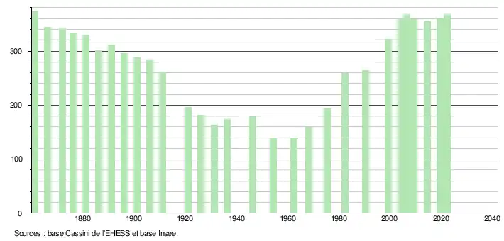 - ↑ Fiches Insee - Populations de référence de la commune pour les années 2006, 2007, 2008, 2009, 2010, 2011, 2012, 2013, 2014, 2015, 2016, 2017, 2018, 2019, 2020, 2021 et 2022.