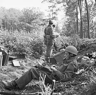 - Robert Capa, photographe hongrois puis naturalisé américain, ou « l'homme aux 6 guerres »[20] puisqu'il a photographié la guerre d'Espagne (1936-1939) avec sa compagne la photographe allemande Gerda Taro (1910-1937) qui y mourut, la Seconde guerre sino-japonaise (1937-1945), la Seconde Guerre mondiale (1939-1945), la deuxième partie de la guerre civile chinoise (1945-1949/50), la première guerre israélo-arabe (1948) et la guerre d'Indochine (1946-1954). Capa est connu pour être l'auteur d'une image iconique de la mort d'un milicien au cours de la guerre d'Espagne, et des seules images fixes du premier assaut du Débarquement allié en Normandie au matin du .