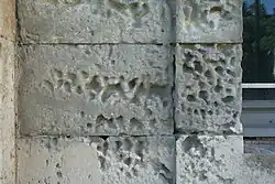 Le principal facteur de la corrosion de la pierre, des bétons, et des matériaux poreux en général, est le sel. Lorsqu'il pleut, l'eau pénètre dans les pores, introduisant le sel dissout. Lors du séchage, le sel cristallise et provoque un éclatement, semblable à l'effet du gel.